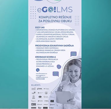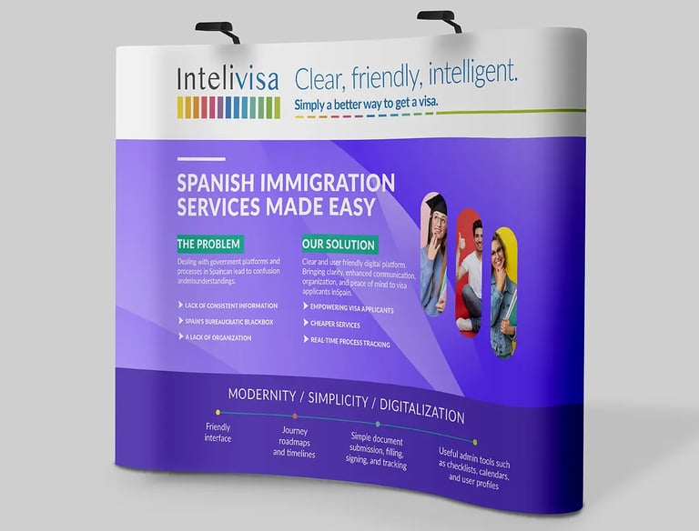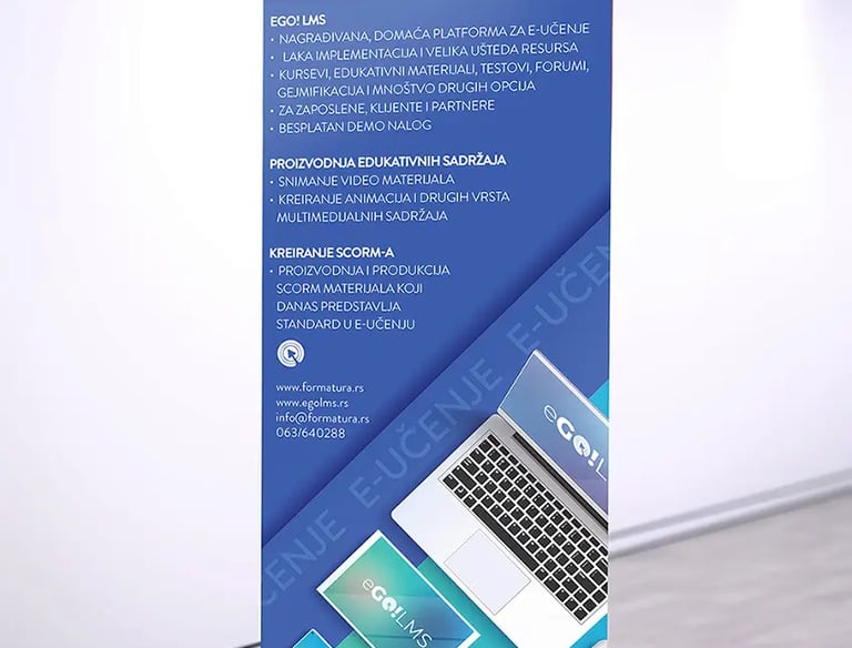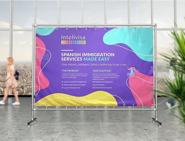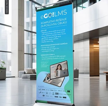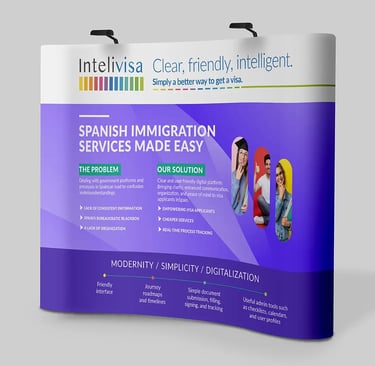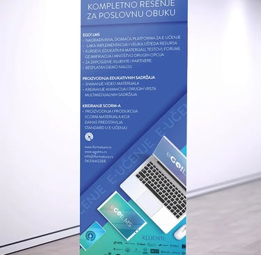 The work here demonstrates the successful translation of brand identity onto a grand scale. Large Format Graphics (including rollups and backdrops) were designed for maximum impact at events, trade shows, and physical locations.